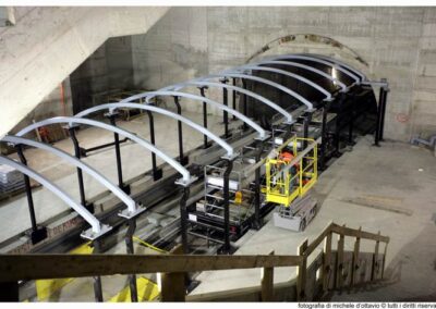 Le stazioni, progettate privilegiando funzionalità, accessibilità e rapidità dei flussi, sono arricchite dalle vetrofanie artistiche di Ugo Nespolo, che portano la storia e l’identità della città anche nel sottosuolo.
