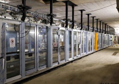 Proseguono le lavorazioni nel prolungamento della linea 1, giunte all’80% del completamento. In galleria è stata ultimata la posa dell’armamento, mentre nelle stazioni Leumann e Cascine Vica è iniziata l’installazione delle porte di banchina. Parallelamente sono in fase di ultimazione le attività nel nuovo deposito e officina che ospitano i 4 nuovi treni Alstom.