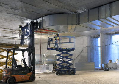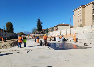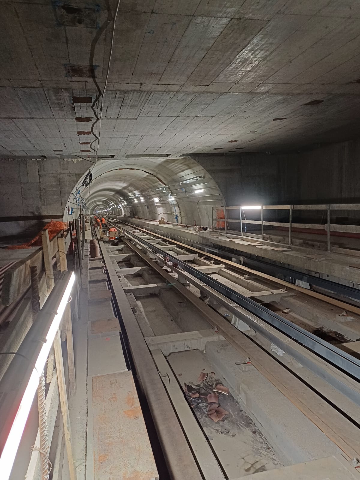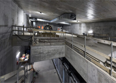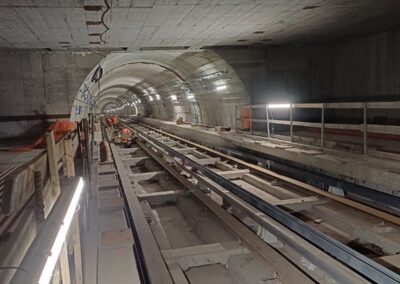 Terminata la chiusura dell’asola di calaggio. Terminati i getti della ventilazione nord. In corso la posa delle piastre per le porte di banchina. Prossimo avvio delle murature. Avviata l’impermeabilizzazione del solaio di copertura.